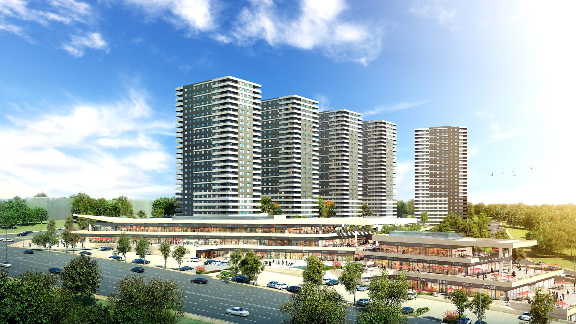 | PROJE BİLGİ : | 27 katlı, 5 blok ,525 adet 4+1 brüt 171 m2 konut ve alışveriş merkezi olarak inşaa edilmiştir. |